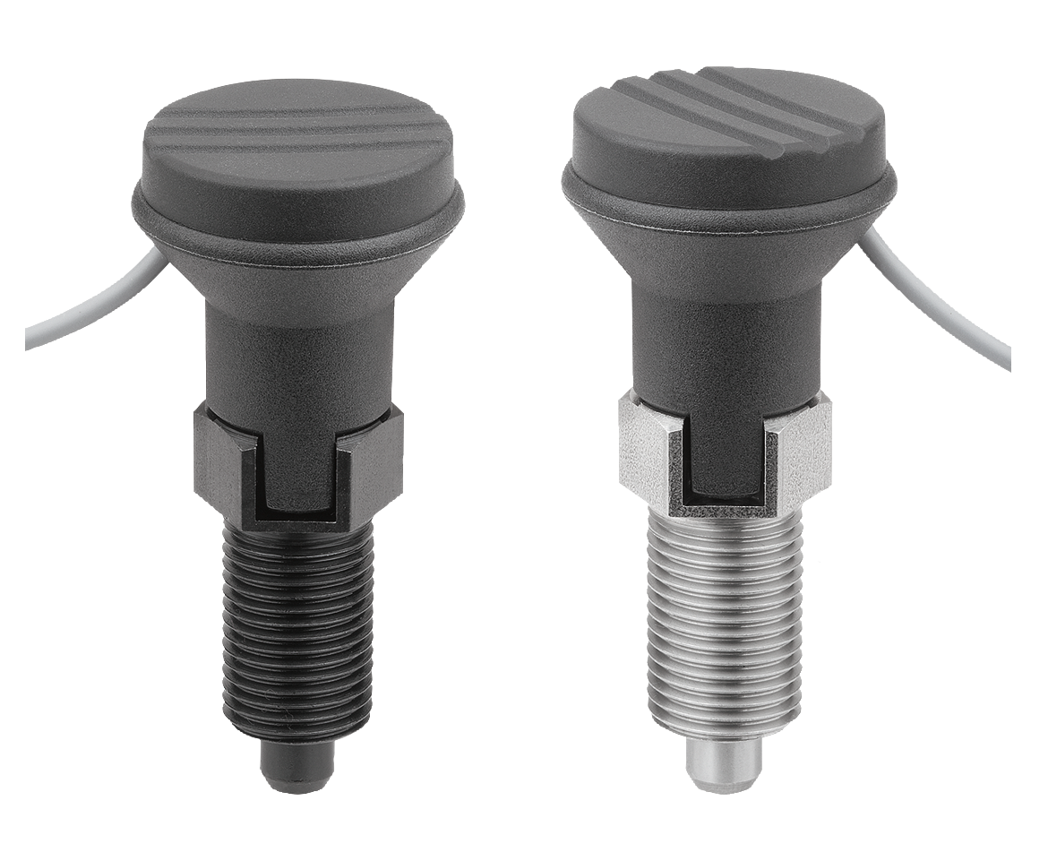 Bei den Arretierbolzen mit Zustandssensor kann der Betätigungszustand elektronisch erfasst und weiterverarbeitet werden.