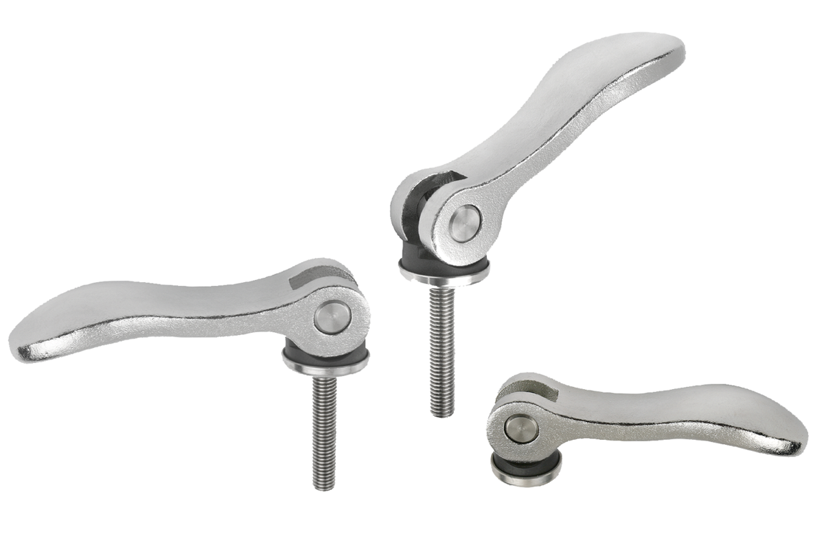 Exzenterhebel Stahl mit Außengewinde, Kunststoff-Metall-Druckscheibe und Stiftschraube Stahl