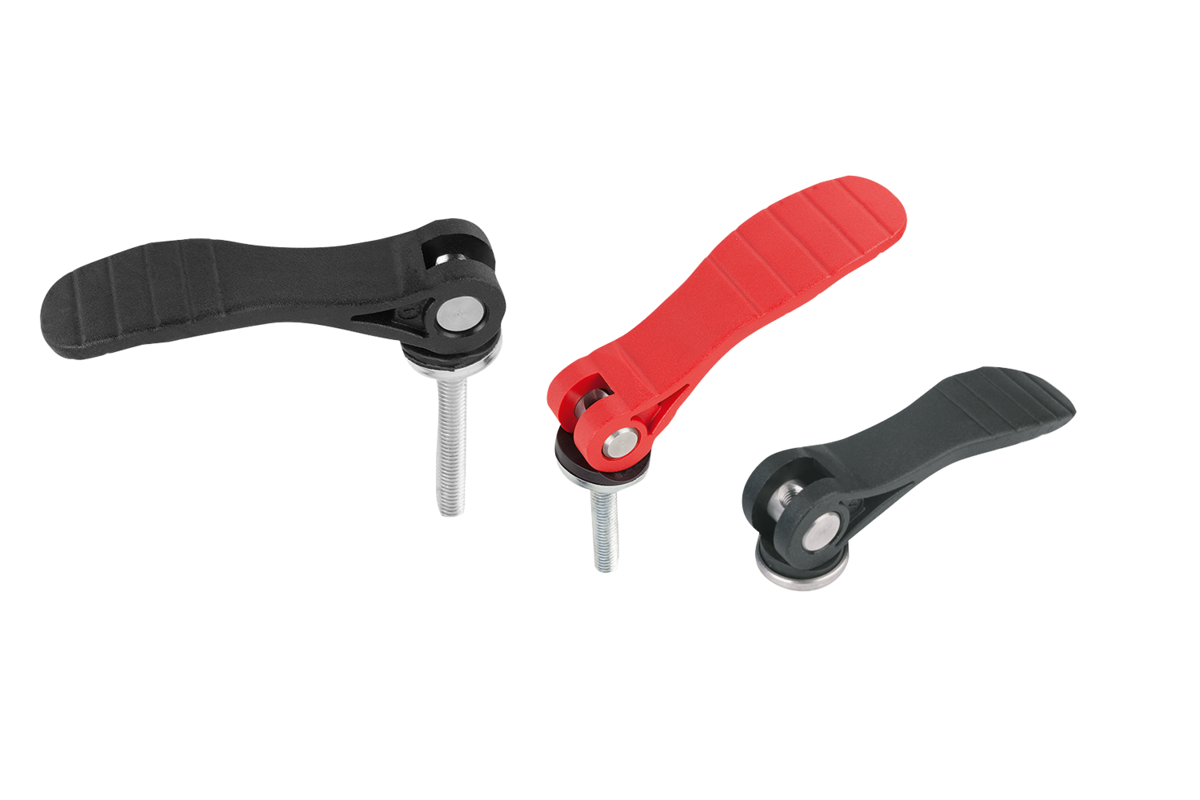 Exzenterhebel Kunststoff mit Außengewinde, Kunststoff-Metall-Druckscheibe und Stiftschraube Stahl oder Edelstahl
