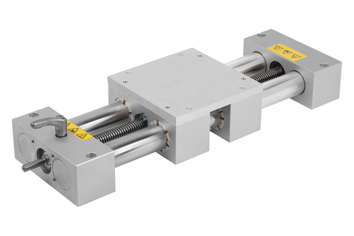 Die Doppelrohr-Lineareinheiten können manuell oder elektrisch angetrieben werden. Die Einheiten können aufgrund ihrer kurzen Einschaltdauer, täglich mehrfach mit niedriger Geschwindigkeit und mit einer hohen Stabilität verstellt werden. Breiten-, Längen- und Höhenverstellung möglich.