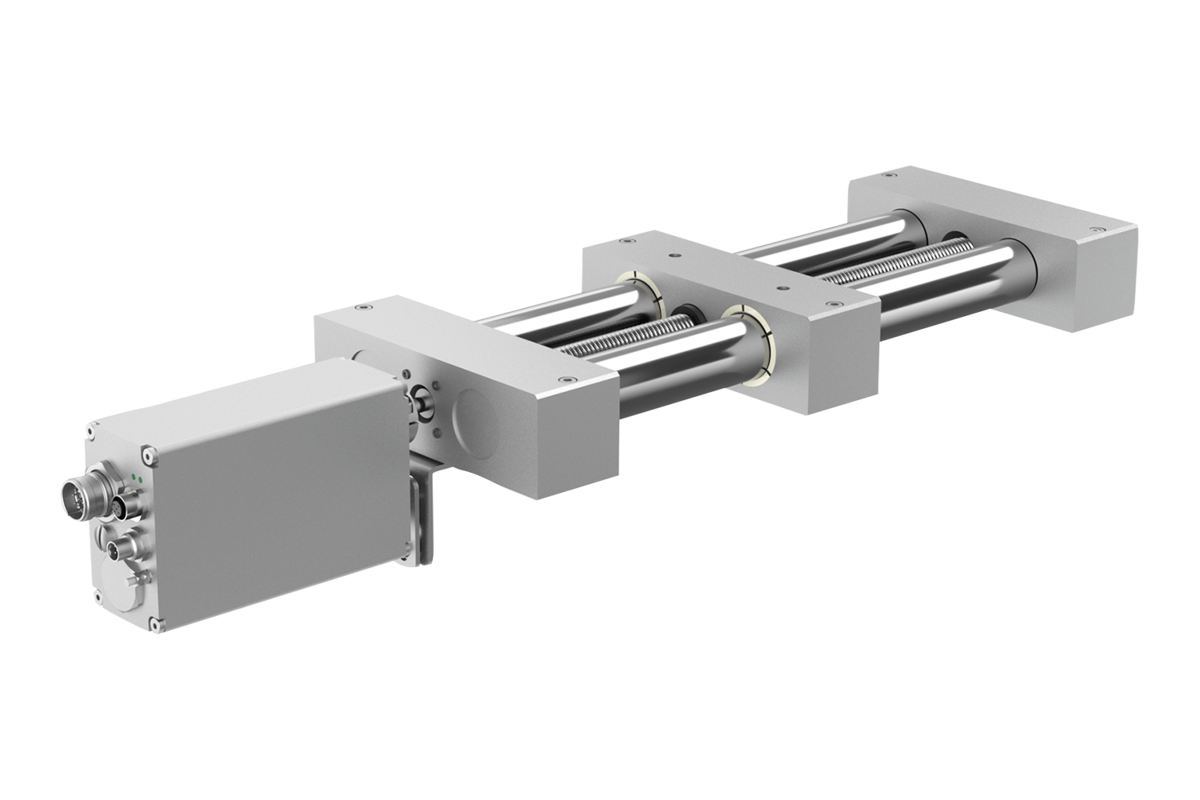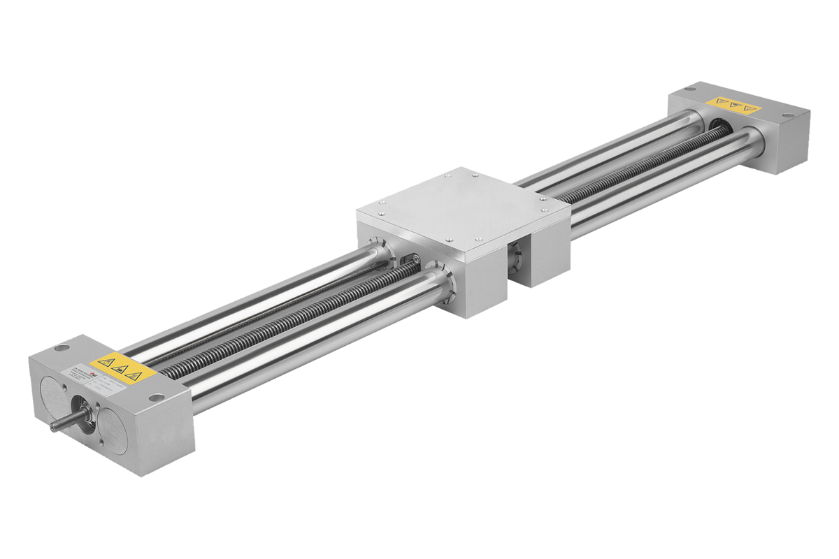Die Trapezgewindespindel der Doppelrohr-Lineareinheiten ist entweder kugelgelagert oder gleitgelagert. Der Schlitten der Doppelrohr-Lineareinheiten ist mit einer Gleitführung versehen.