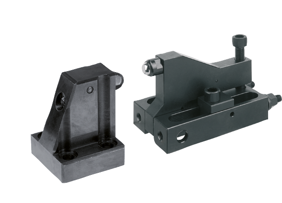 The unit comprises of an adjustable side clamp and a side stop and are used to clamp workpieces with a simultaneous positive down force. The side clamp has two DIN 913 grub screws which can be set to prevent backward slippage during clamping.