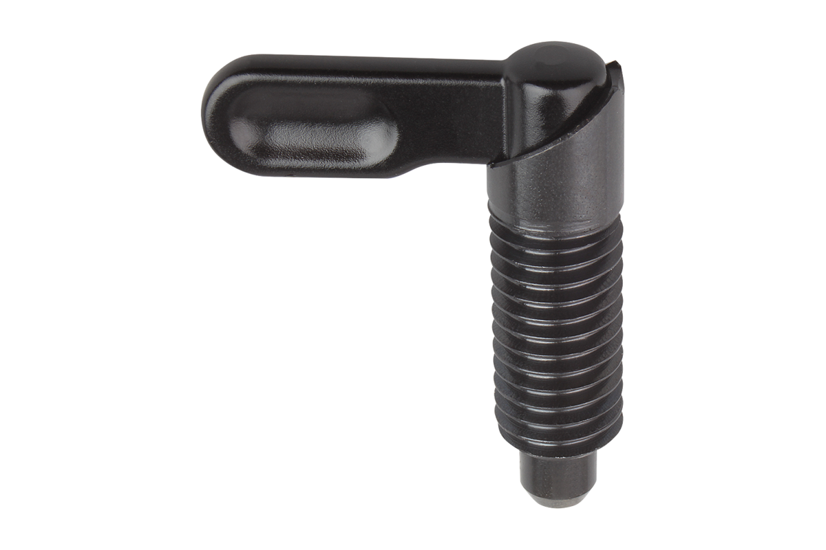 Cam-action indexing plungers are used when the indexing pin should not project all the time. Turning the handle through 180° retracts the pin and a notch ensures that the handle remains in this position.