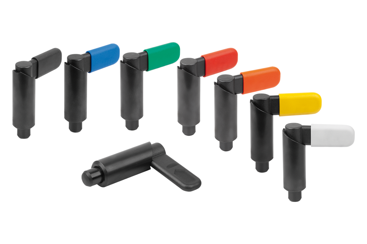 Cam-action indexing plungers are used where any change in locking position due to lateral forces should be prevented. Turning the grip through 180° retracts the indexing pin, enabling a change in the indexed position. The notch ensures that the grip remains in this position and the indexing pin remains retracted.