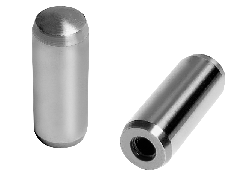 Tapped cylindrical pins are chiefly used in blind holes. The milled flat prevents air compression in blind holes. The tapping makes it possible to use the extractor 03328.