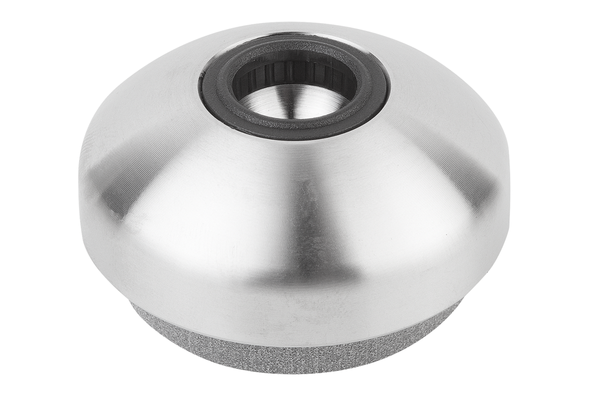 The load rating given in the table is a recommendation of the permanent static load up to which the absorption unit should be used. This static load corresponds to a pressure per area of 0.4 N/mm², at which the material achieves its optimum absorption properties. Here it is taken into account that under dynamic demands an additional load, up to 0.6 N/mm² may occur. The damper plate absorbs vibrations and prevents the swivel foot slipping. Swivel feet consist of a plate and a threaded spindle or ball joint. Any plate can be combined with any threaded spindle or ball joint.