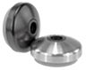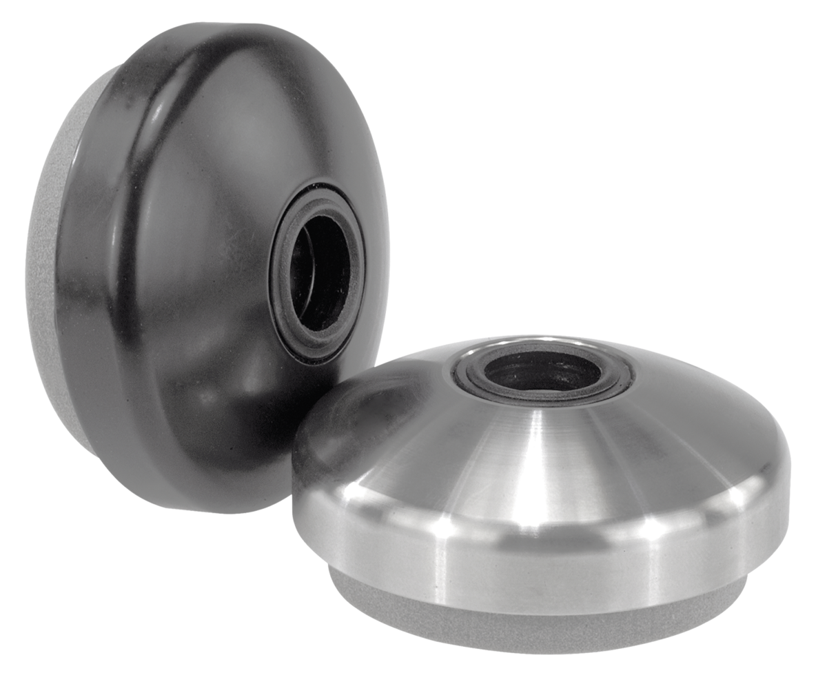 The load rating given in the table is a recommendation of the permanent static load up to which the absorption unit should be used. This static load corresponds to a pressure per area of 0.4 N/mm², at which the material achieves its optimum absorption properties. Here it is taken into account that under dynamic demands an additional load, up to 0.6 N/mm² may occur. The damper plate absorbs vibrations and prevents the swivel foot slipping. Swivel feet consist of a plate and a threaded spindle or ball joint. Any plate can be combined with any threaded spindle or ball joint.