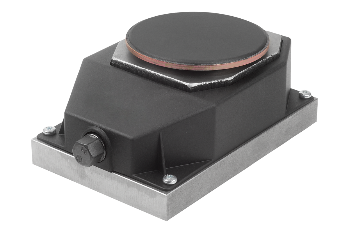 The spherical machine support on vulcanised nitrile rubber compensates for unevenness in the floor, acts as slip protection, is oil-resistant, protects the machine from undesired vibrations, provides insulation from structure-borne noise, and is resistant to aggressive media. The filler-free rubber compound is not deformed or compressed by the static load of the machine.